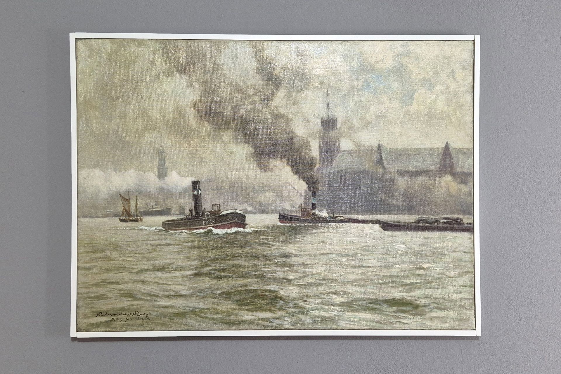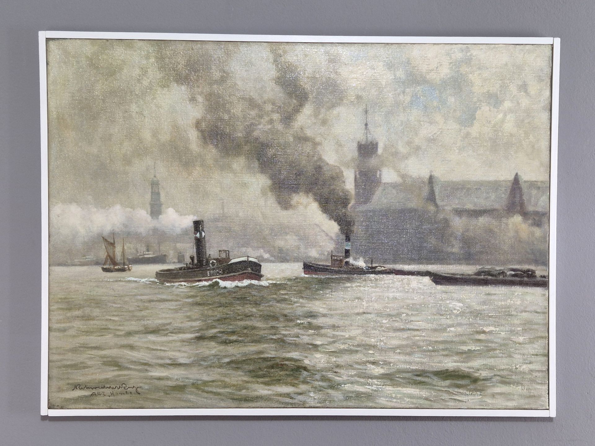 Sehr schönes Hamburg Gemälde des bekannten Marinemalers Karl Rohwedder Ruge (1865 ~ 1943)