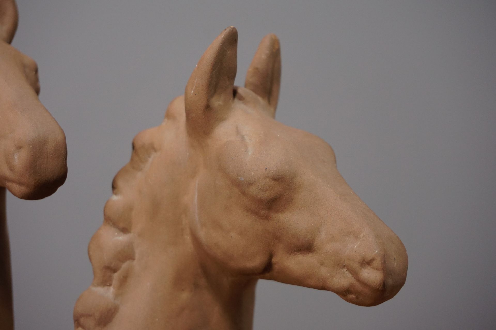 Wunderschöne monochrome Keramik Skulptur zweier junger Pferde/Fohlen.