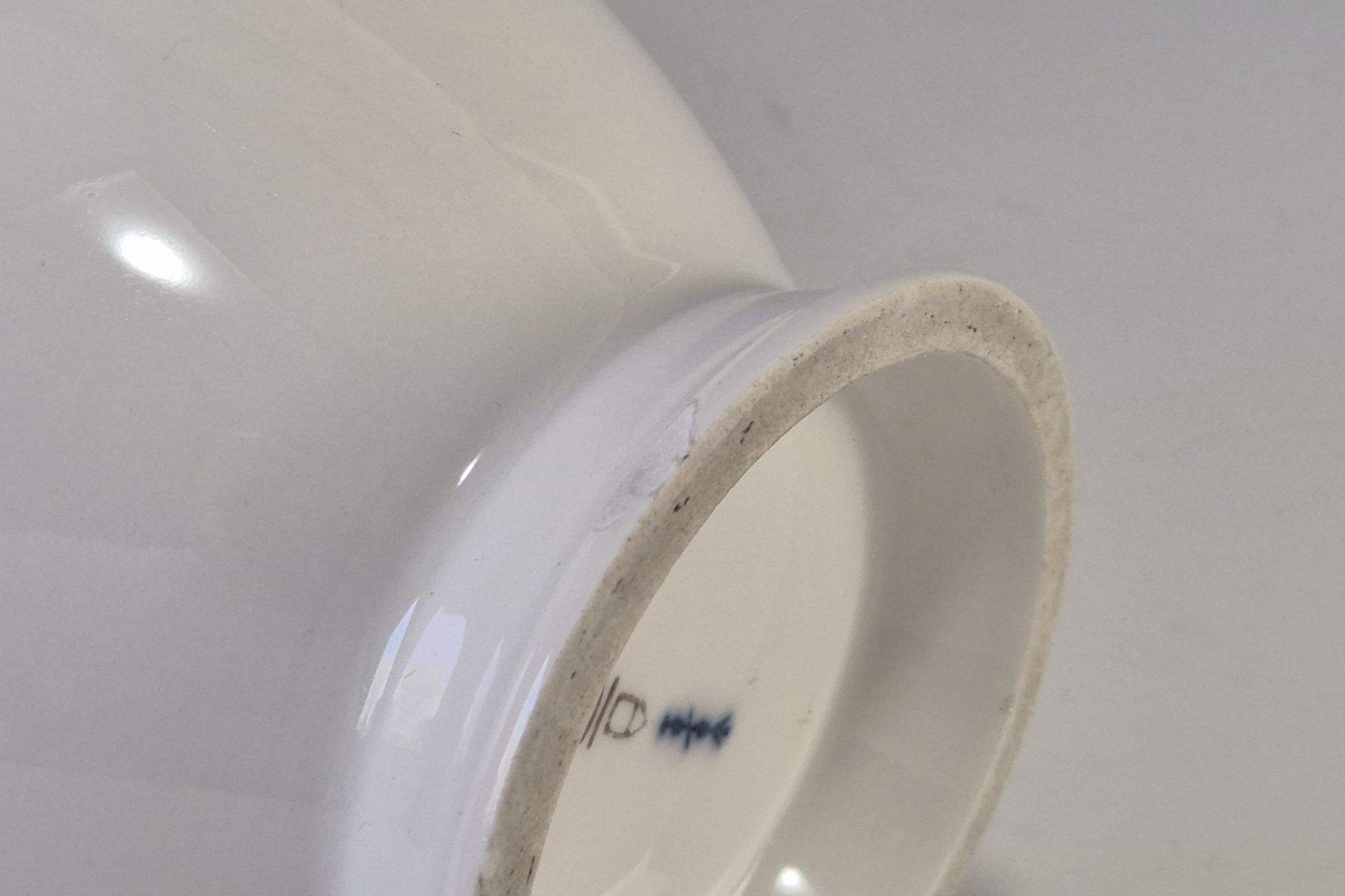 Am Sockel gibt es einen Chip. Diesen könnte man rückstandslos vom Porzellanrestaurator restaurieren/entfernen lassen.