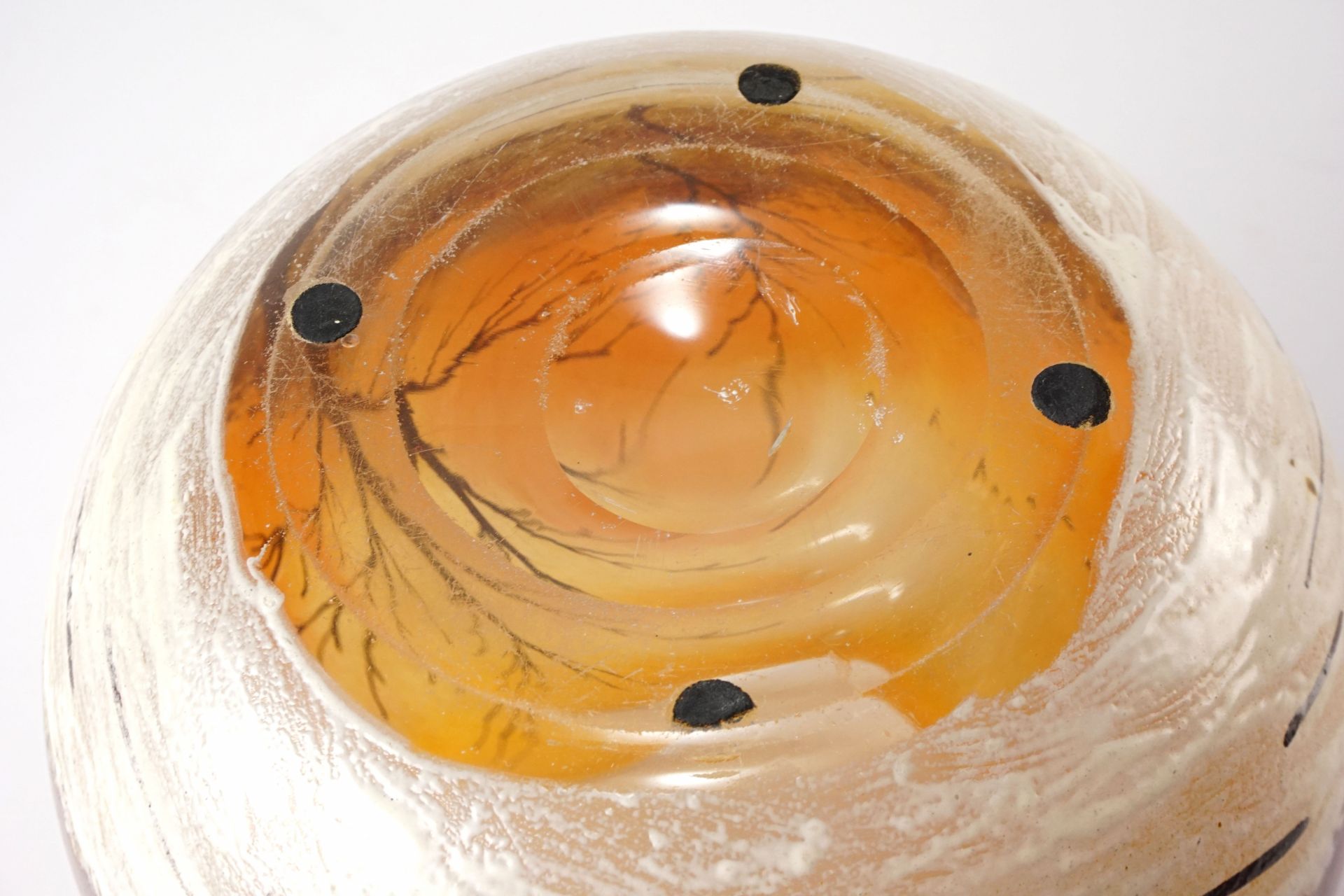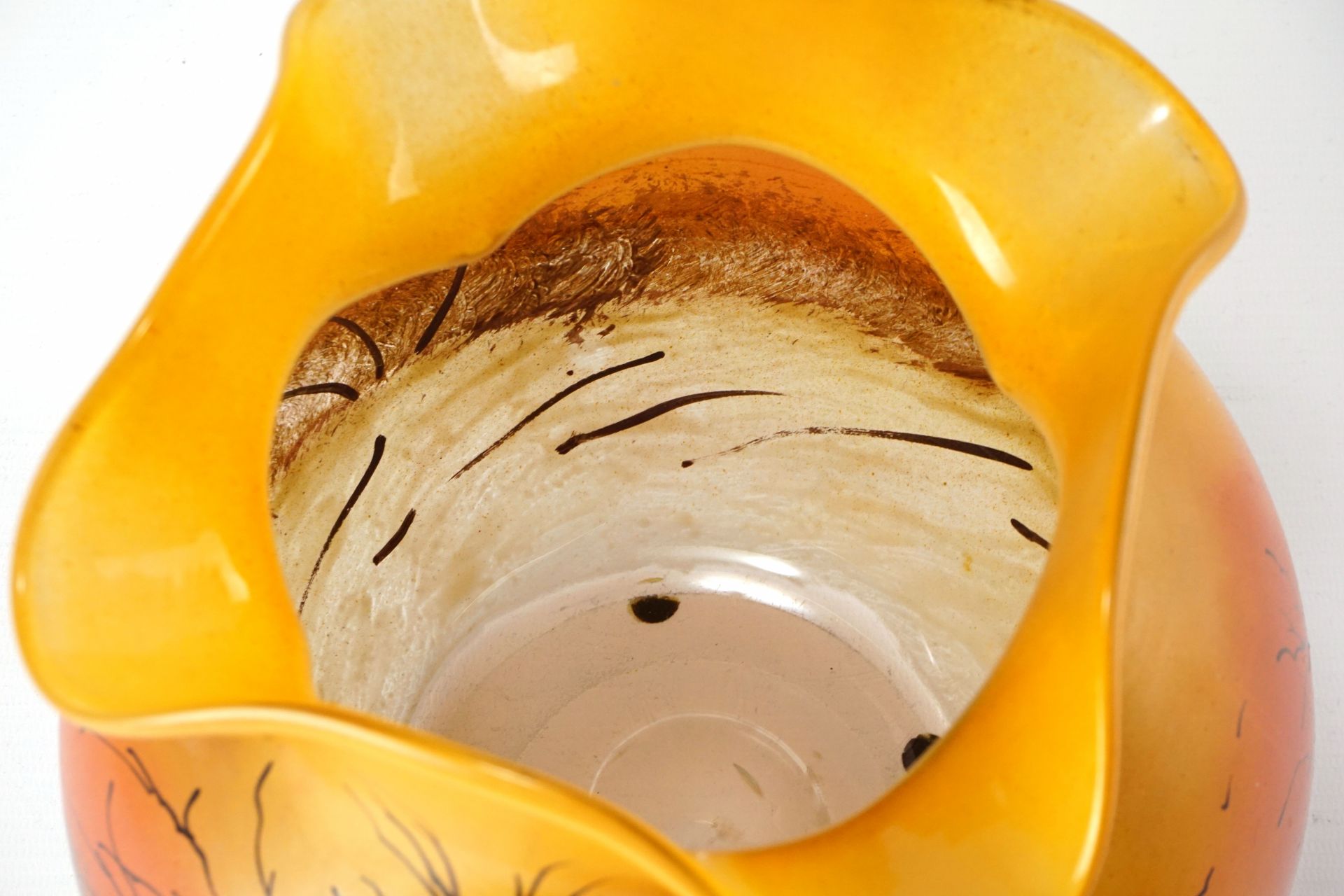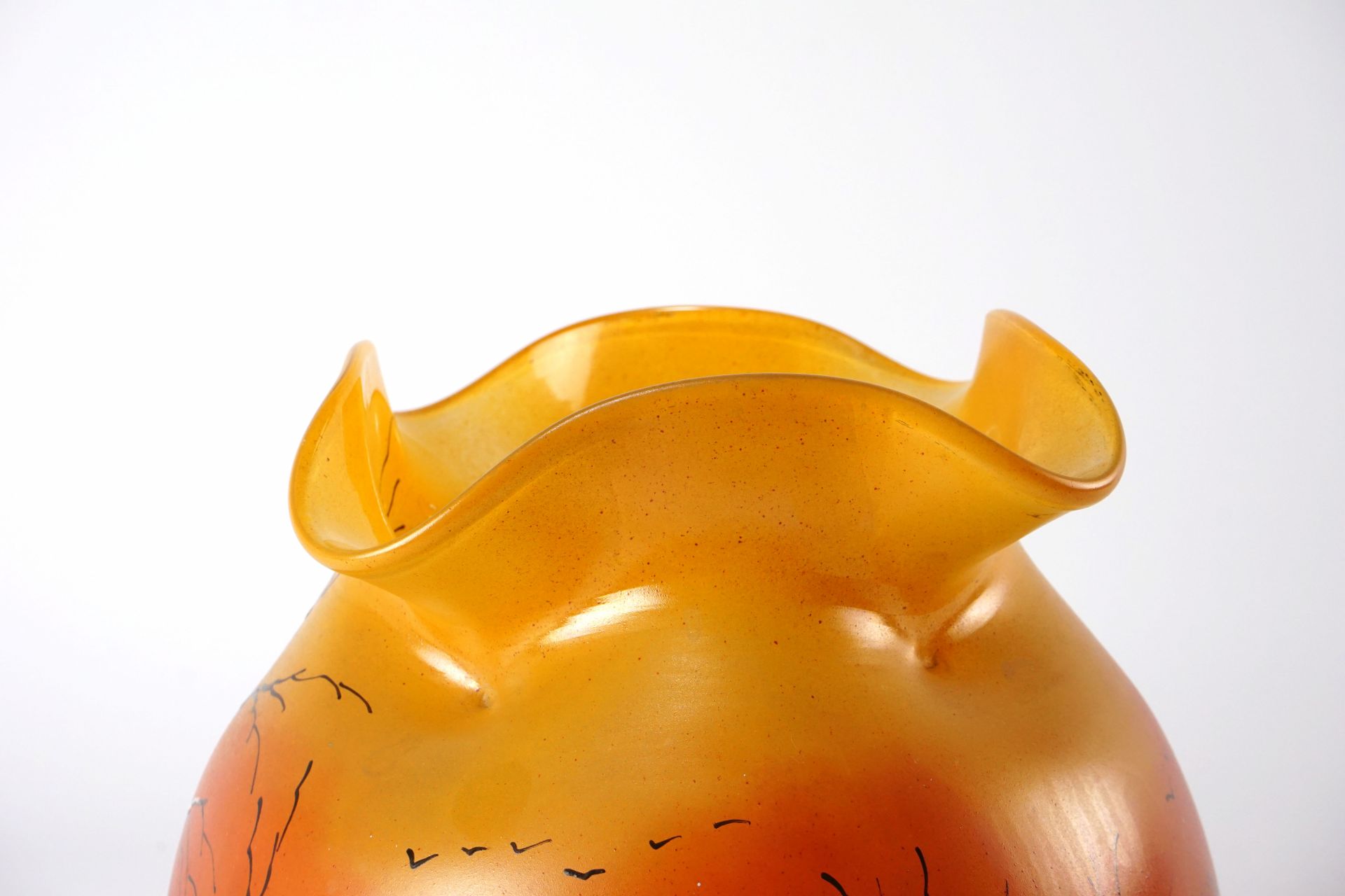 Wunderschöne Jugendstil Kugelvase mit aufgestelltem Wellenrand der Glasfabrik Legras & Cie in Saint-Denis / Frankreich.