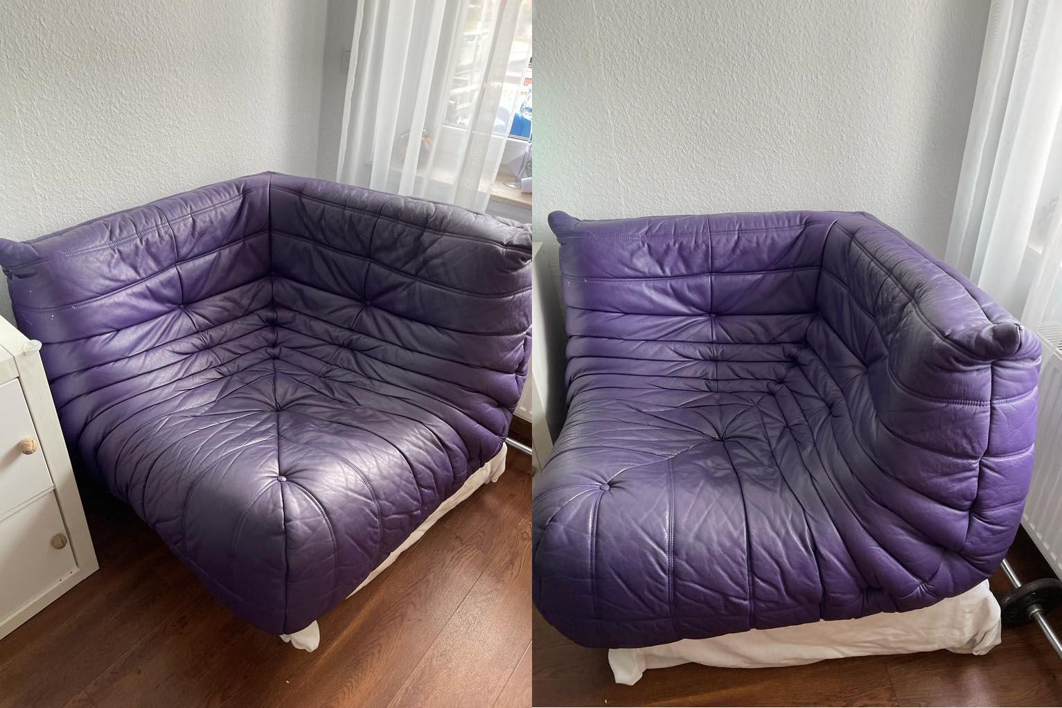 Alle Teile sind original mit pinkfarbenen/violetten Echtleder bezogen. Eine Farbe die polarisiert...wir aber einfach genial finden wegen ihrer Einzigartigkeit.