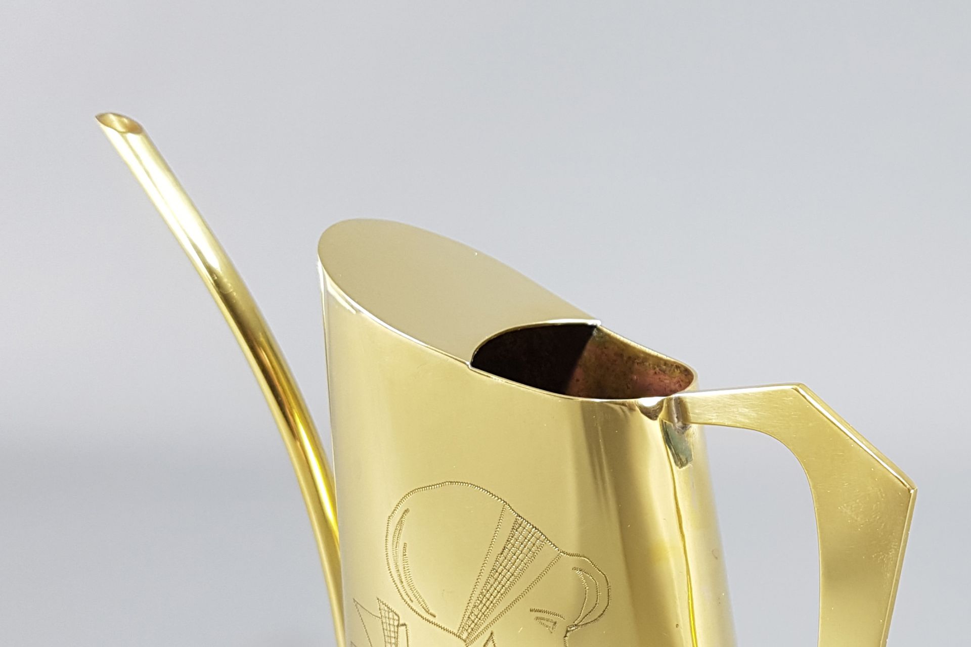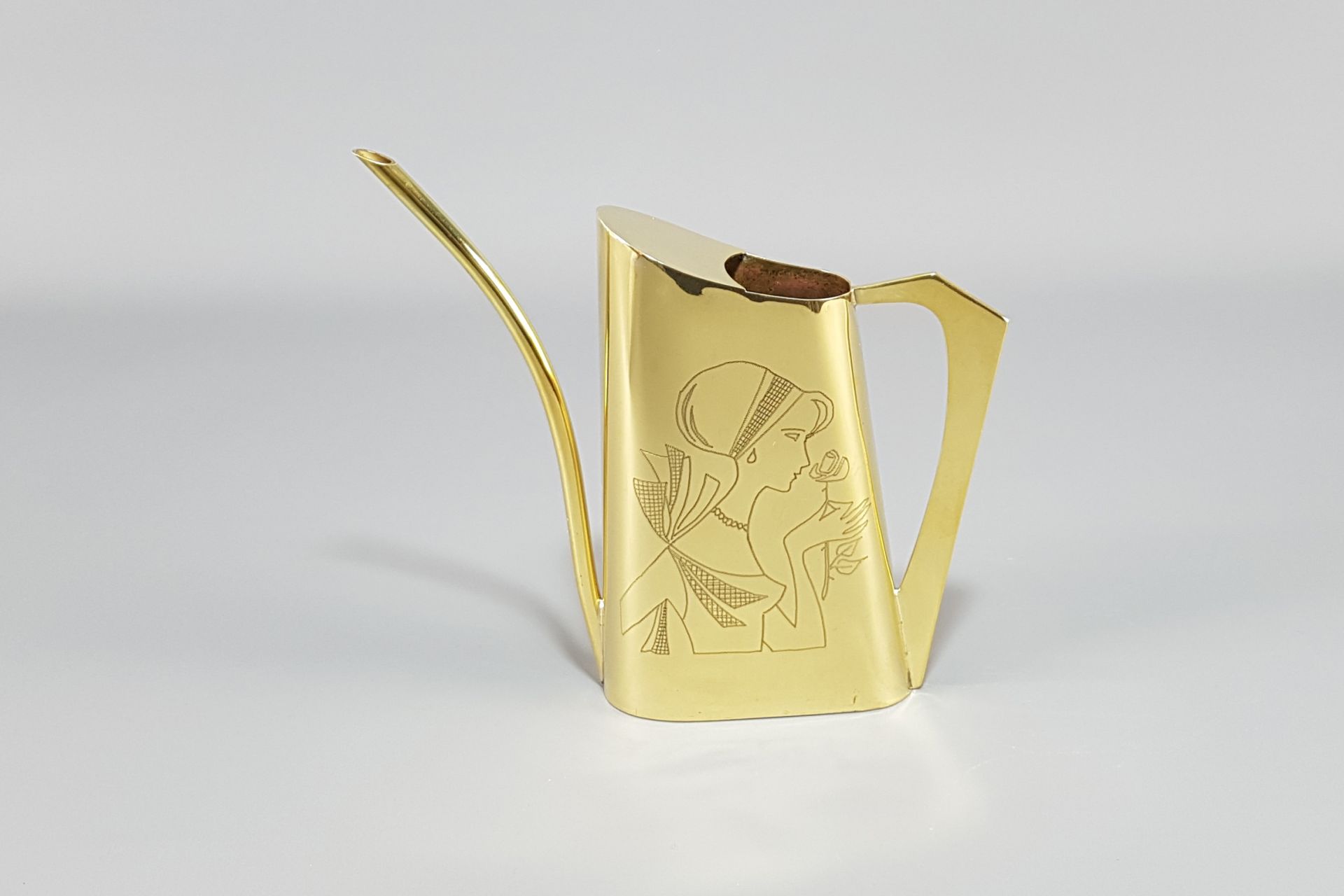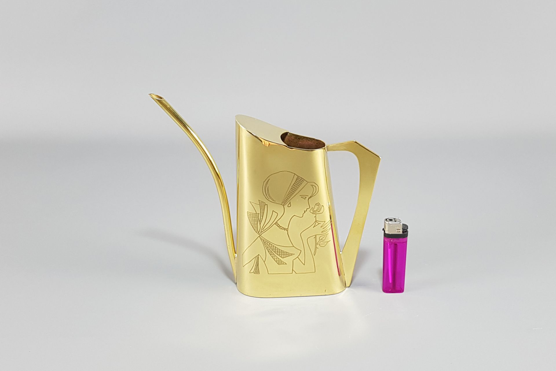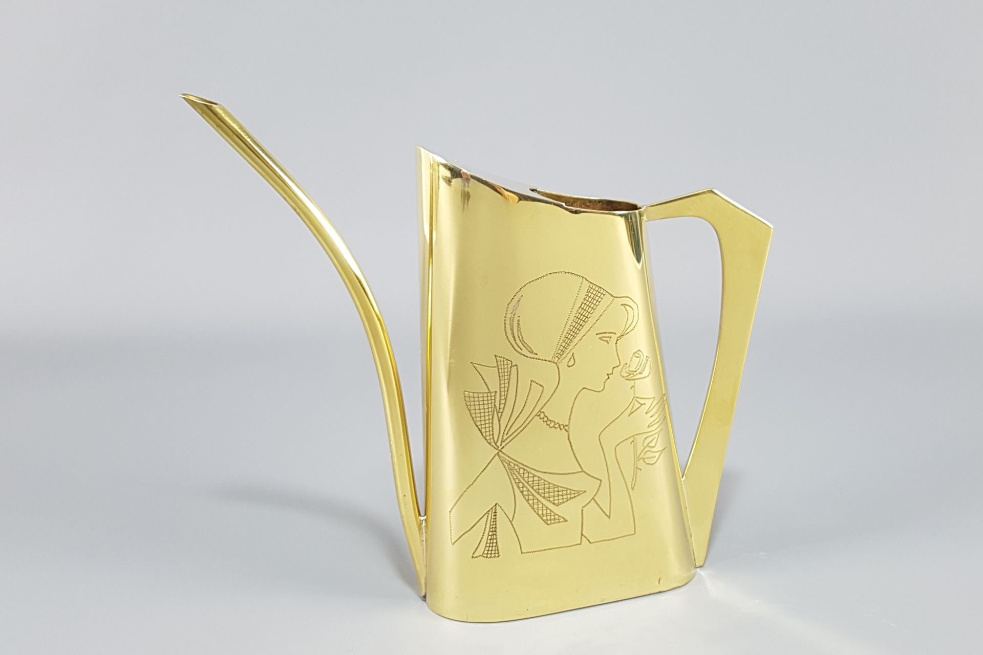 Wunderschöne Mid Century Blumen Gießkanne aus poliertem Messing.