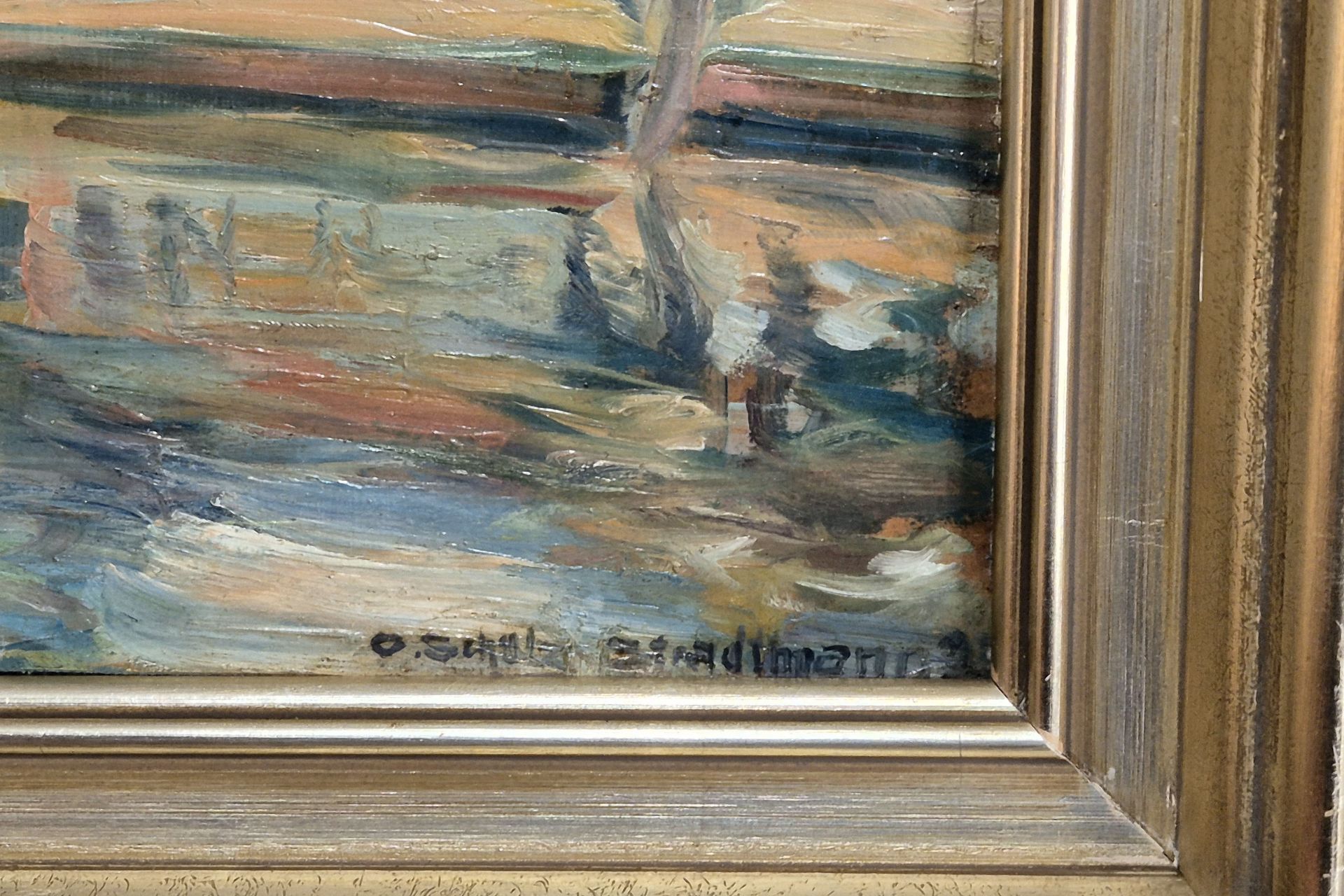 Gemalt vom bekannten Künstler Otto Schulz Stradtmann, einem Hamburger Maler, der vor allem für seine norddeutschen Landschaftsmotive, wie auch Stadtansichten bekannt ist.