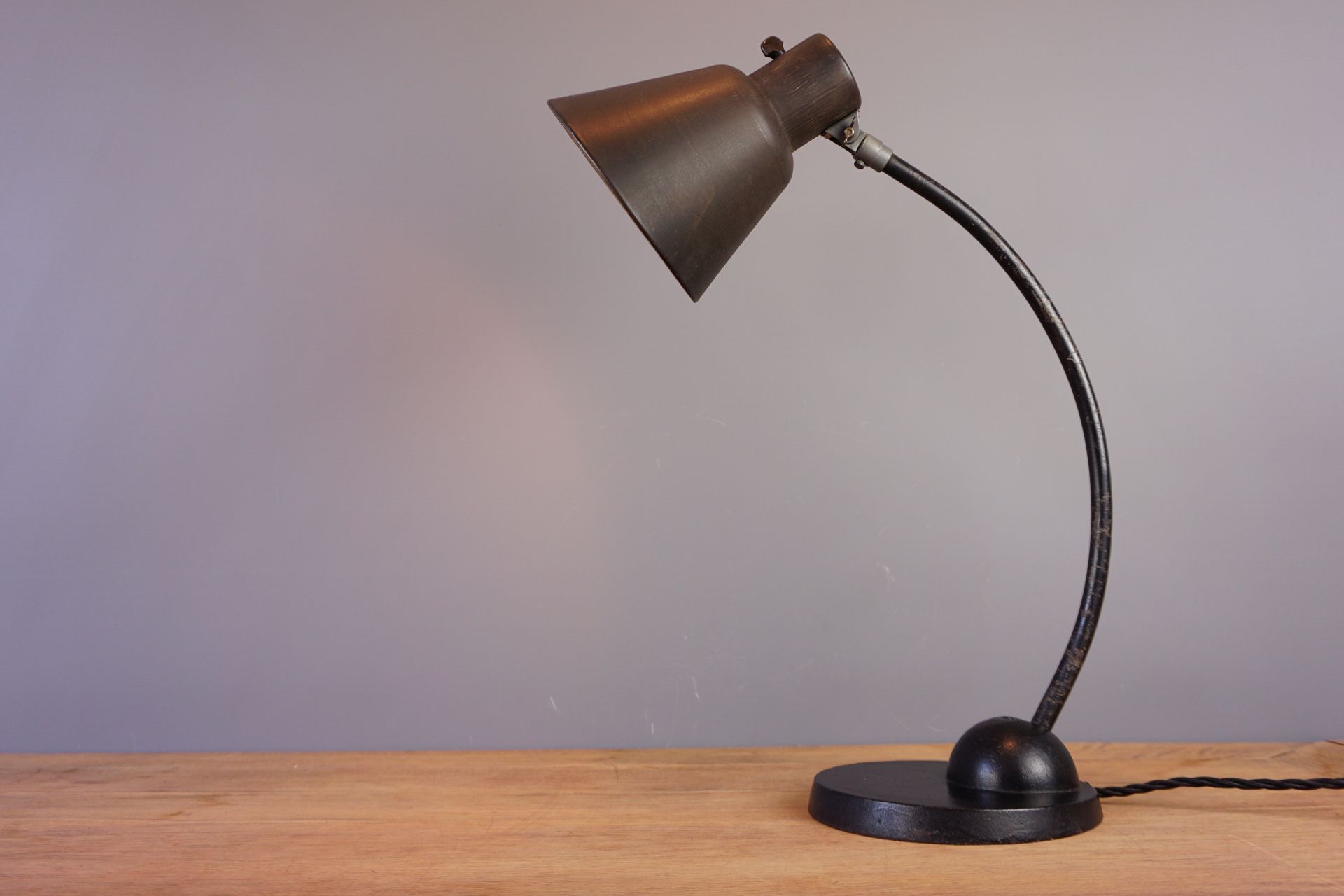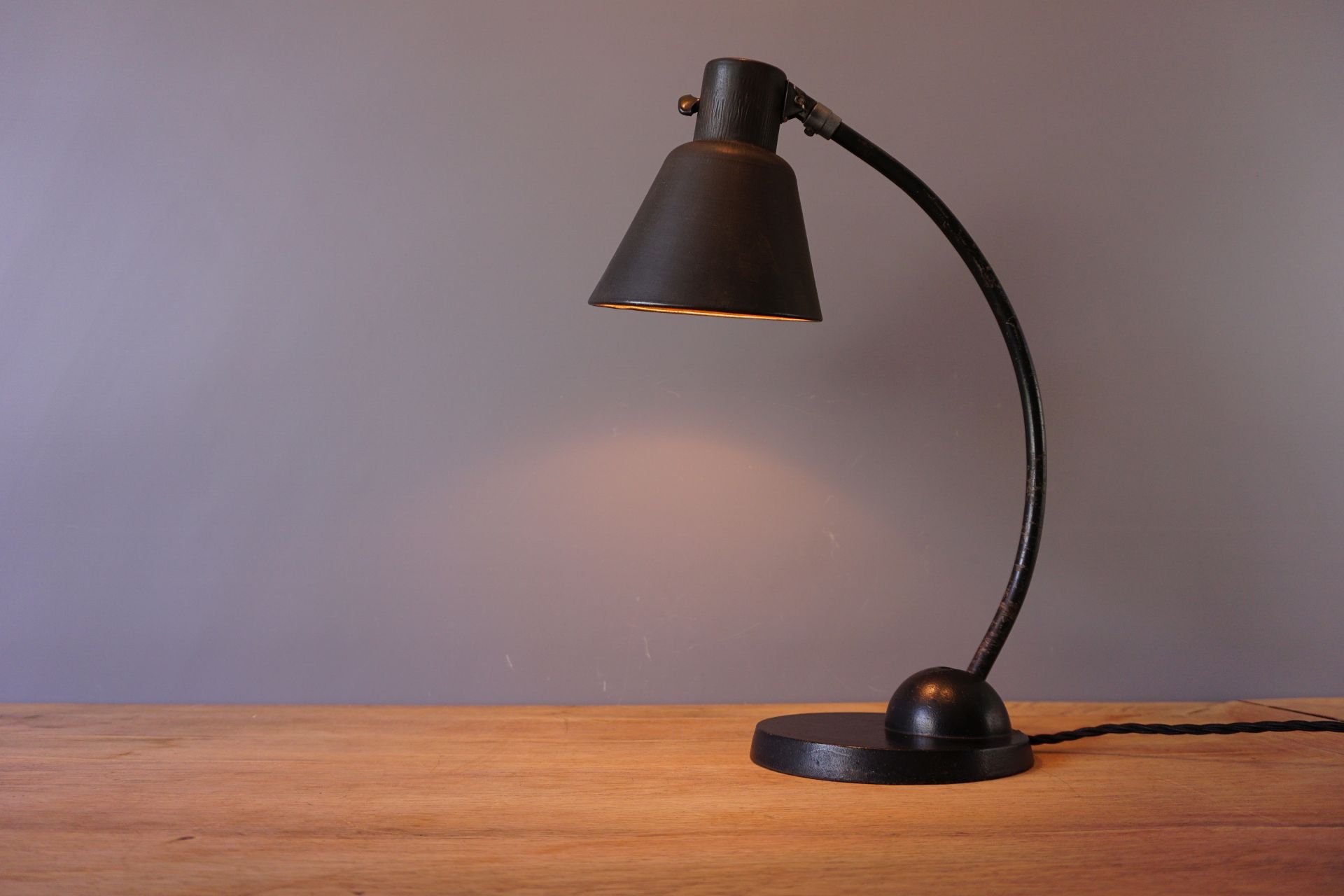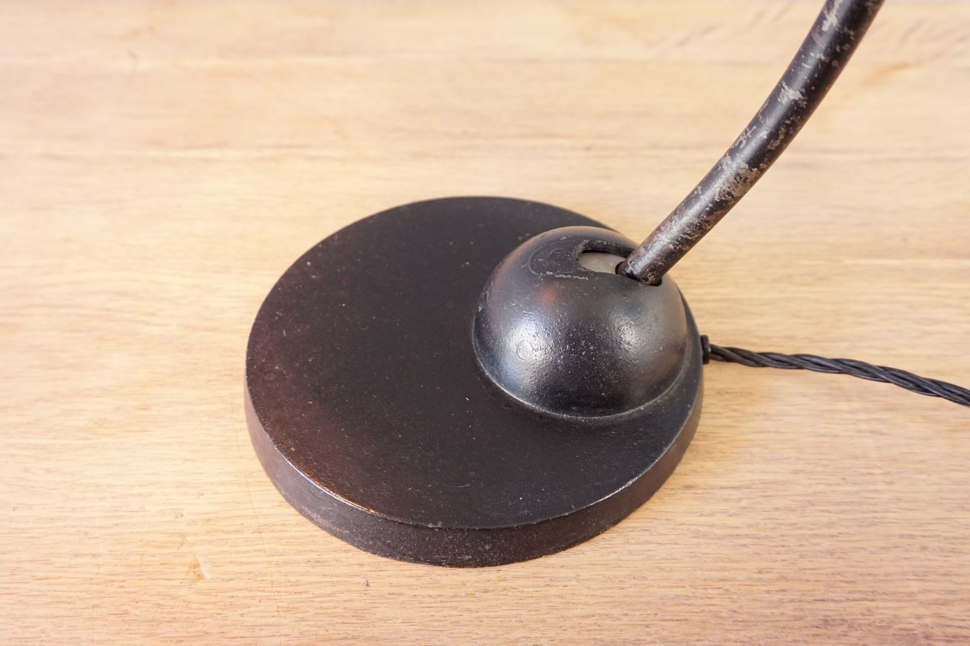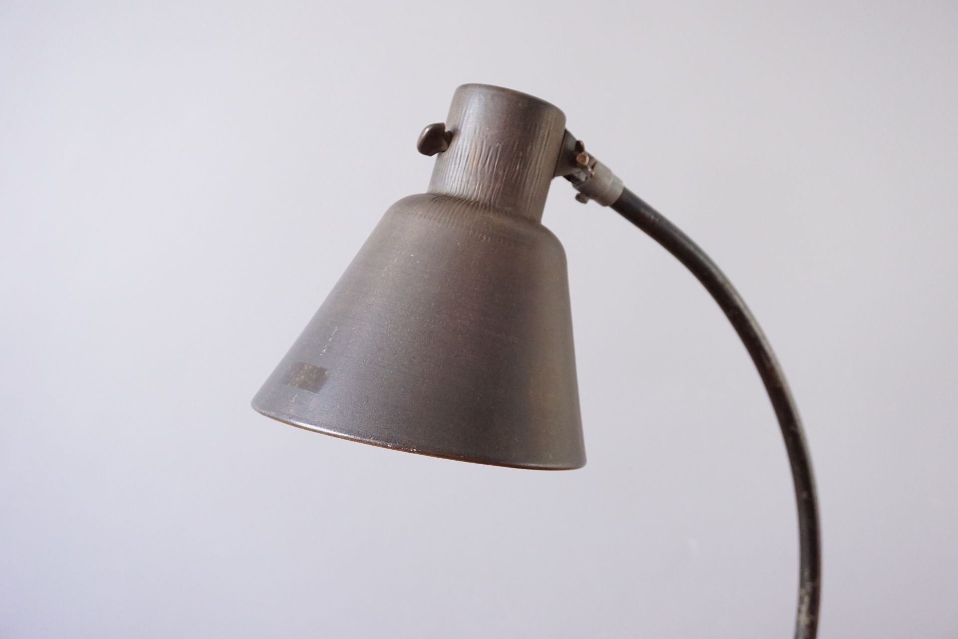 Wunderbare Schaco Tischlampe im industriellen Bauhausstil, 1930er Jahre mit rundem Fuß.