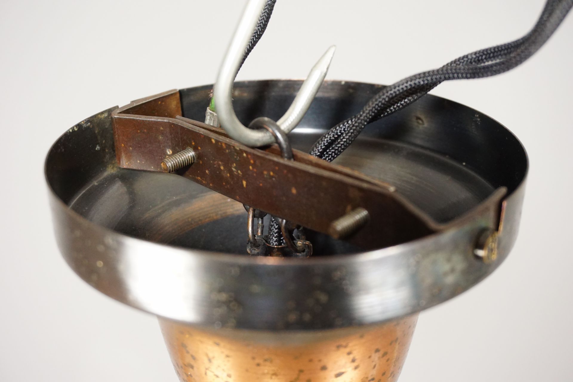 - Original Deckenbaldachin aus verkupfertem Eisenblech inkl. dem oft fehlenden Montagebügel + original Schrauben