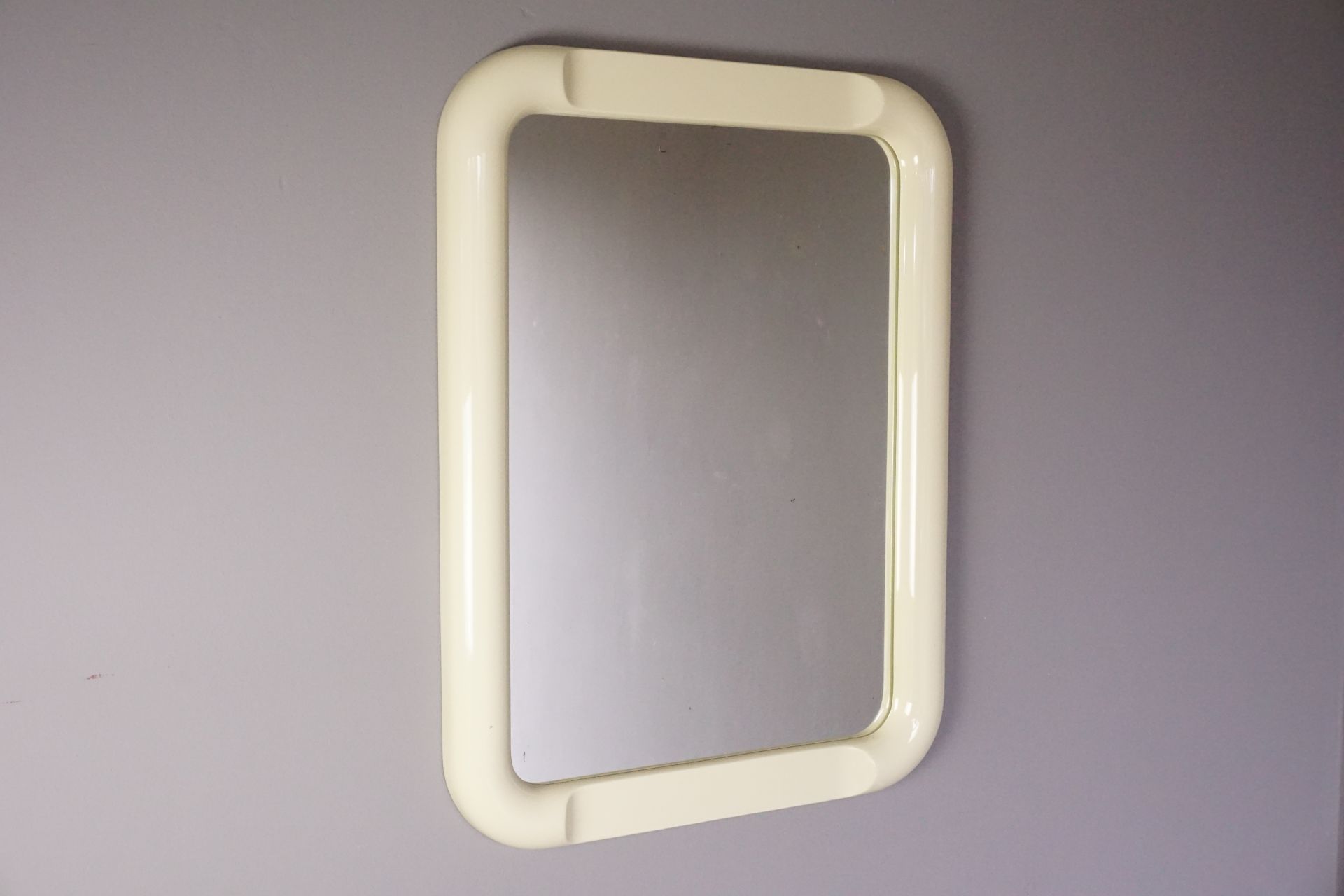 Der Rahmen/Grundträger besteht aus einem festen Poyurethankunststoff der hier original altweiß lackiert wurde.