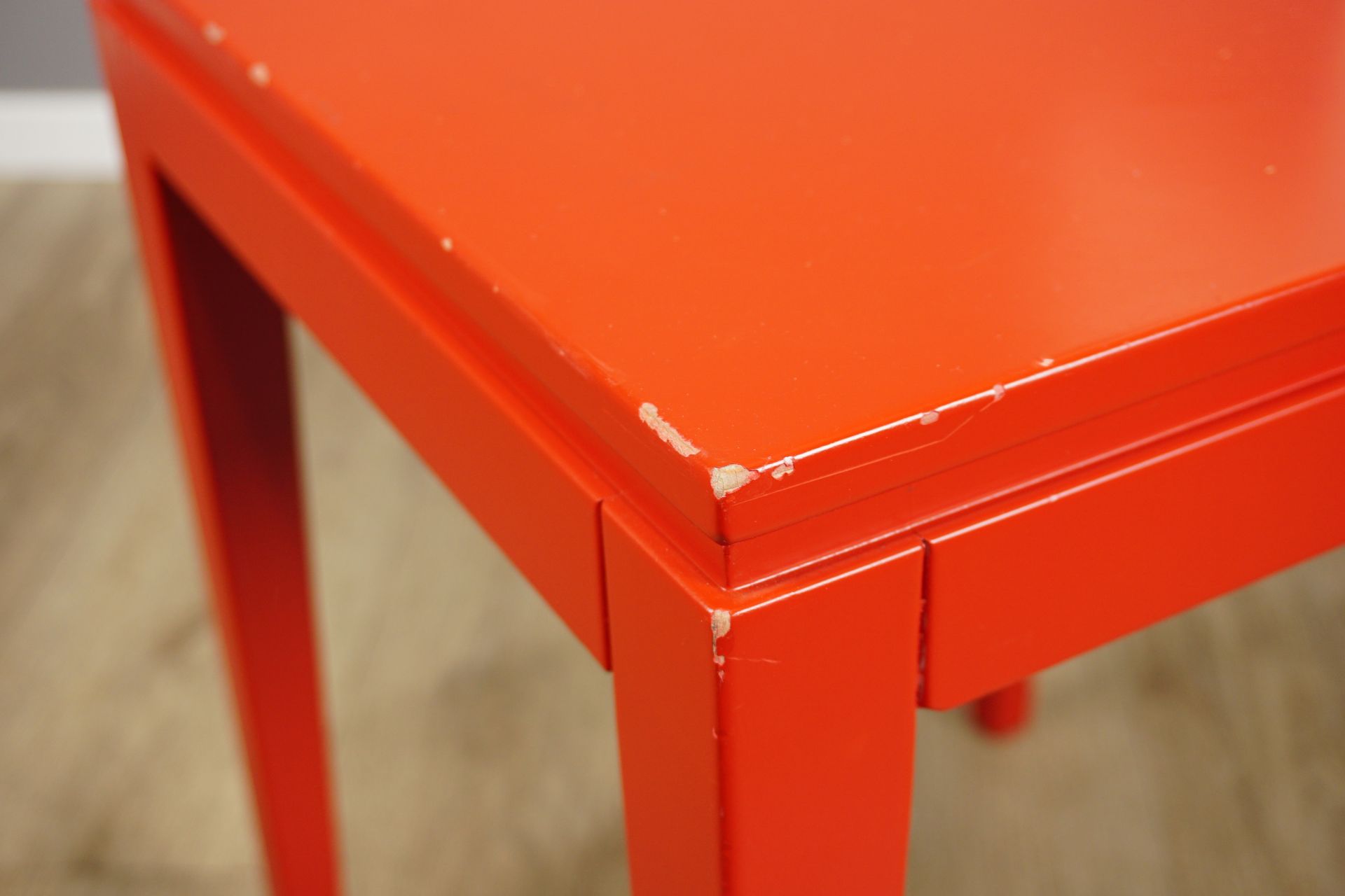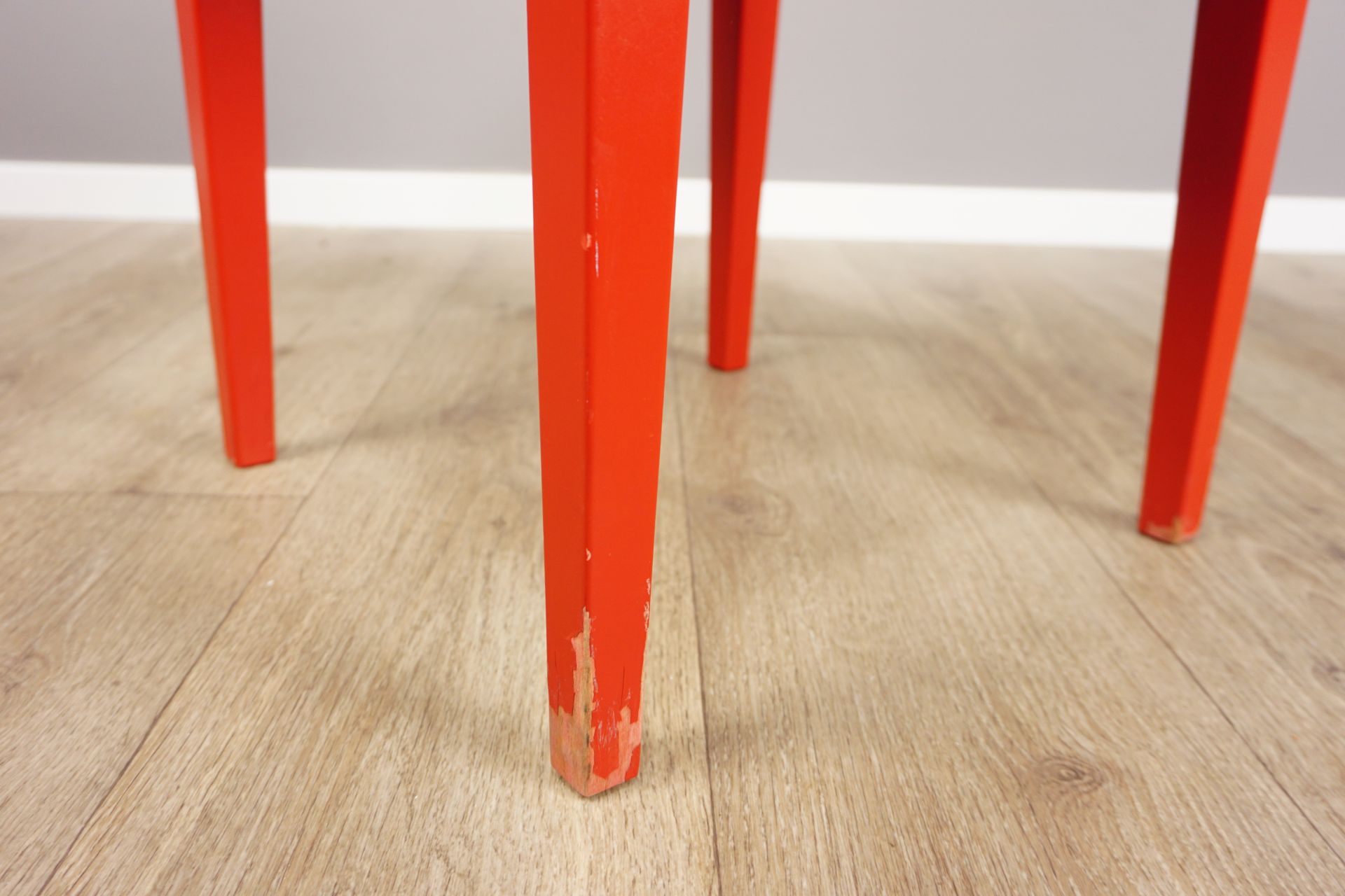 Durch die exakte Geometrie bietet sich der Stuhl ebenso als nützlicher Beistell/-oder Nachttisch an.